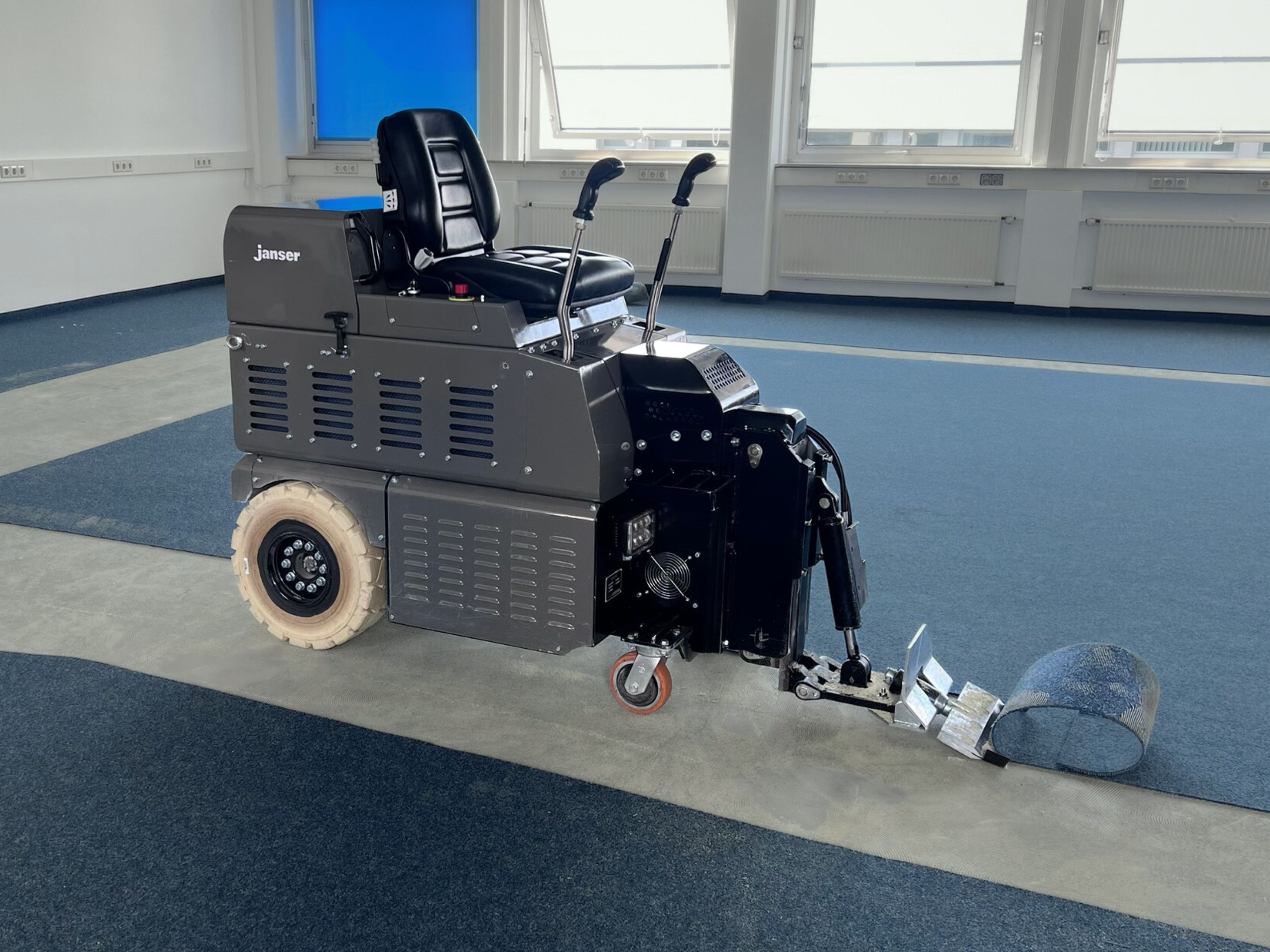Akkubetriebener Aufsitzstripper mit Hydraulikantrieb – stark auf der Baustelle, attraktiv im Preis.